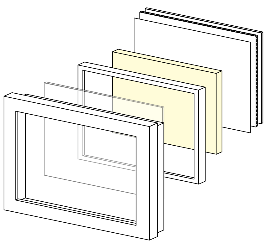 通常、作品がアクリル板に付着するのを防ぐ為、入子やライナーといった