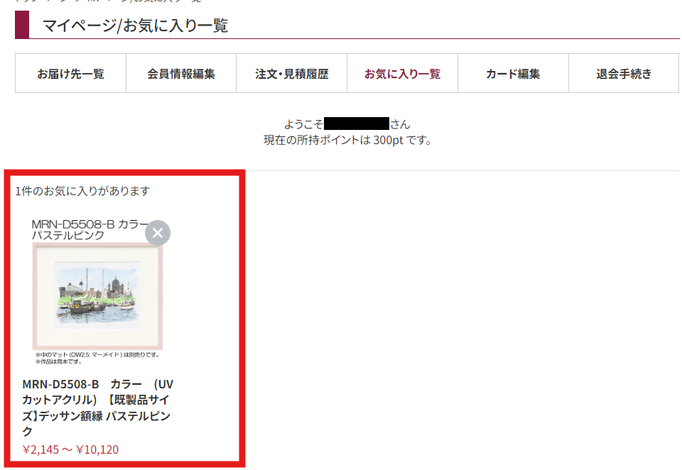 →気になった商品のページで、ハートマークをクリックするとお気に入り登録できるようになりました。(以下の画像を参照)マイページでお気に入り保存したものを確認できます。