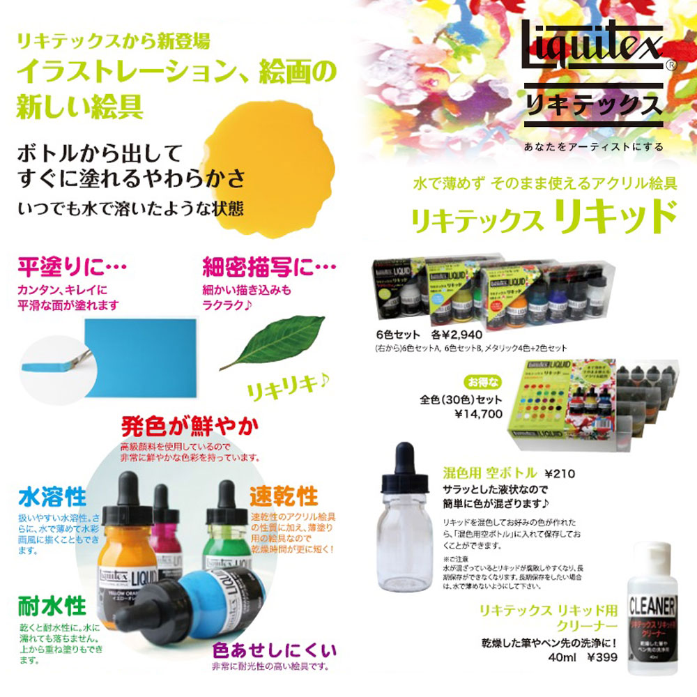 液状だから、すぐ描ける!混色しやすい!いつでも同じ濃度!