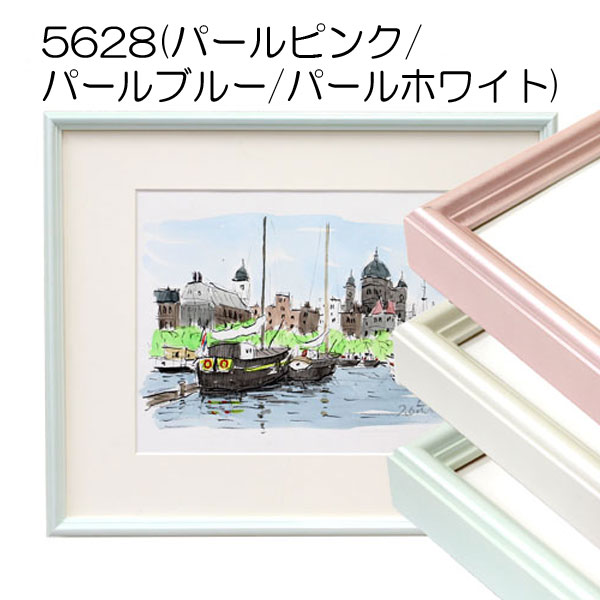 「5628」は、フレーム幅:16mmの額縁です。パールピンク、パールブルー、パールホワイトの3種類。幅広い作品に対応でき、作品を引き立てます。