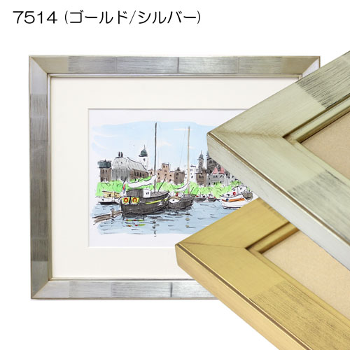 「7514」は、フレーム幅:35mmの箔の継ぎ目が特徴的な額縁です。色はゴールドとシルバーの2種類ございます。幅広い作品に対応でき、質感高い額装ができます!水彩画、水墨画、写真等々、おしゃれに額装します!