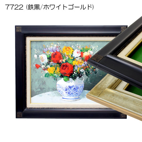 「7722」は、フラットでシンプルな油彩額縁です。コーナーの模様が特徴的でアンティークな仕上げになっています。