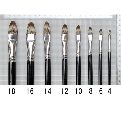 入手困難な中硬毛のマングースを使用したフィルバートロング筆。シリーズ8772よりも穂丈があるため、含みが良く、また揃いも良いので人気のあるシリーズです。