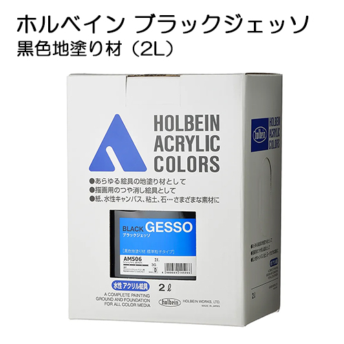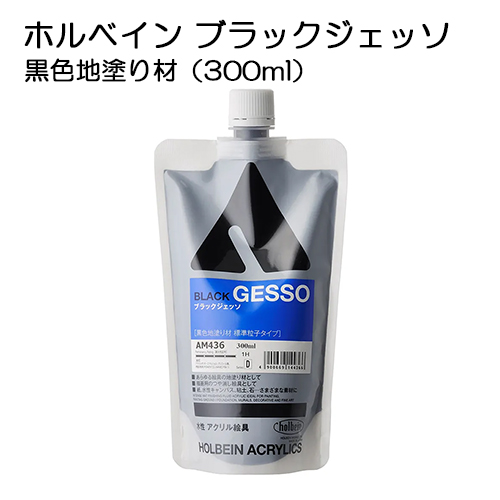 白が最も一般的ですが、ブラックジェッソやカラージェッソはアクリル絵具の発色とペンキのような手軽さを兼ね備えた、絵具のような下地材です。