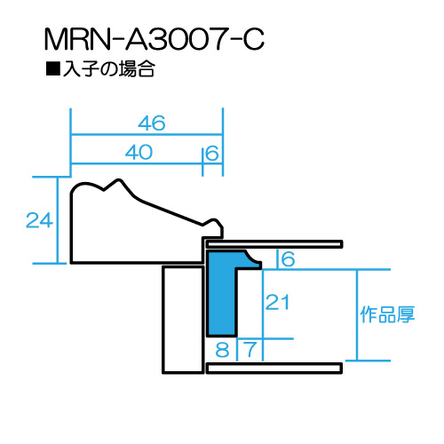 【入子・金】 : キャンバスサイズ + 100mm (48mm☓2 + 4mm)