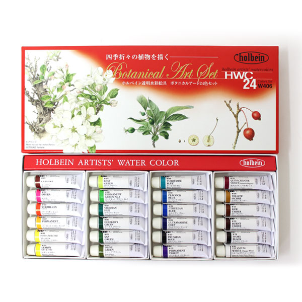 [ホルベイン]透明水彩絵具ボタニカルアート24色セット(2号チューブ)W406