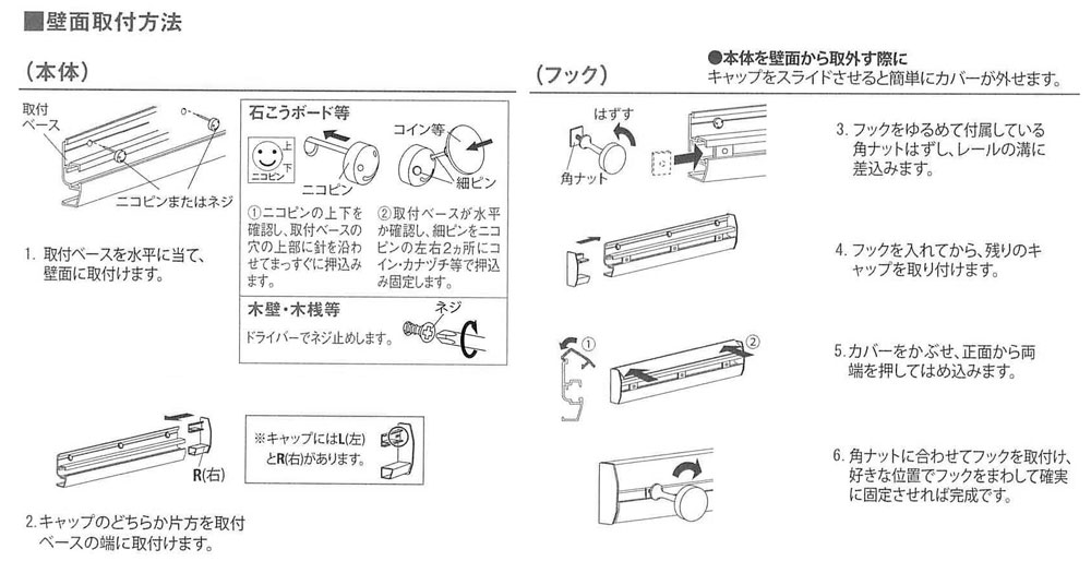 付属:フック5個・ニコピン5個・細ピン12本・木ネジ5本