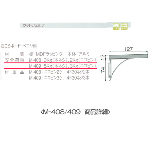 安全荷重:5kg(ネジ利用時)、3kg(ニコピン利用時)