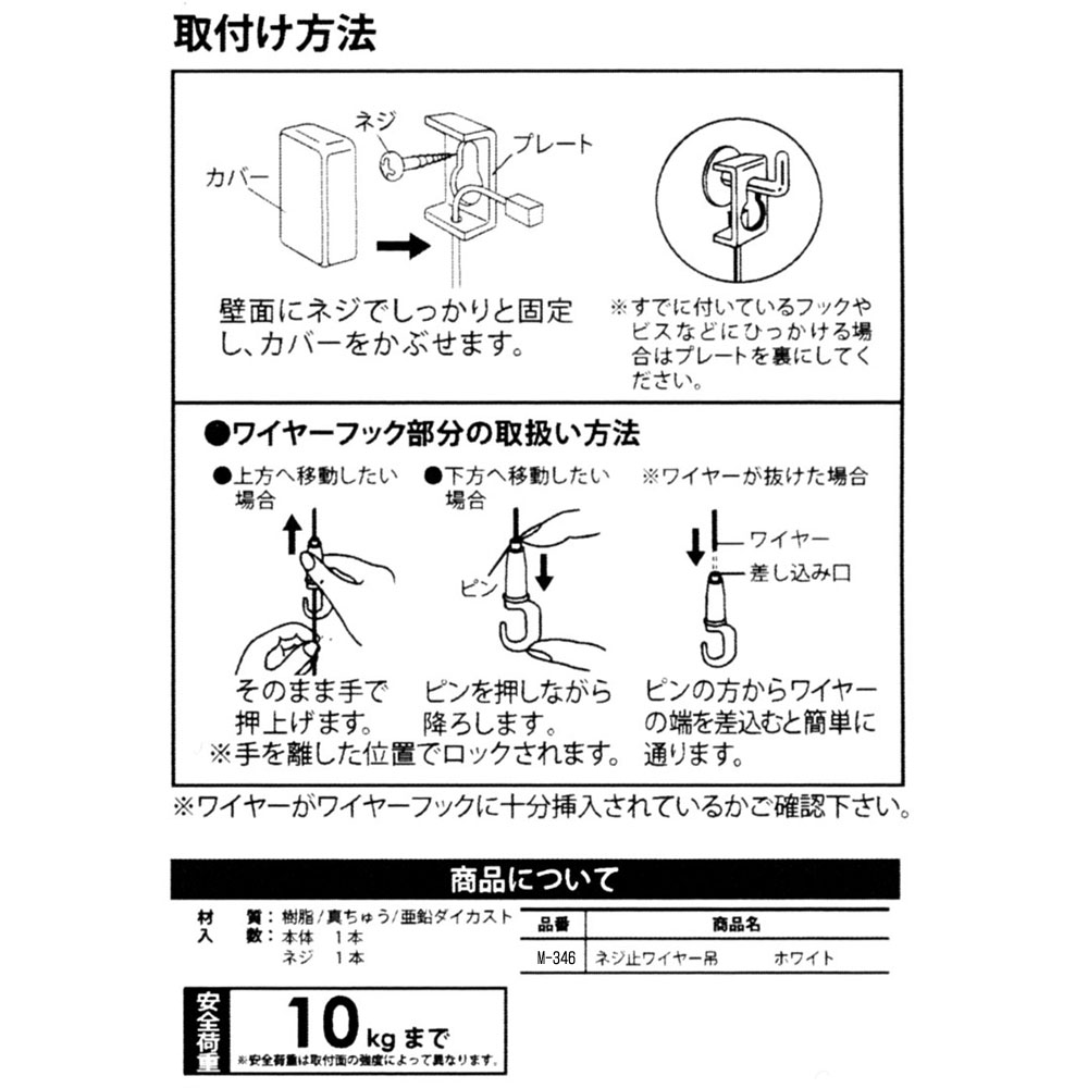 ◎M-346(1.0m・Φ1):安全荷重:10Kg、1個入/袋、木ネジ付