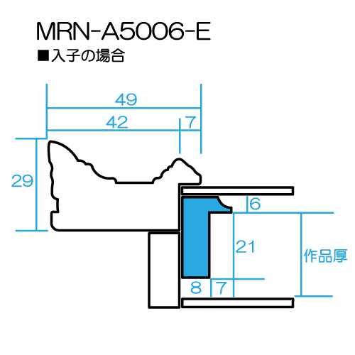 【入子・金】 : キャンバスサイズ + 104mm (50mm☓2 + 4mm)