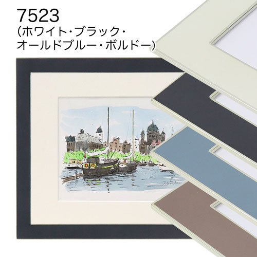 「7523」は、フレーム幅:35mmの額縁です。フラットな形状に箔の縁取りがアクセントになっていてシンプルかつ上品な額縁です。作品にもお部屋にも馴染みやすいデザインです。