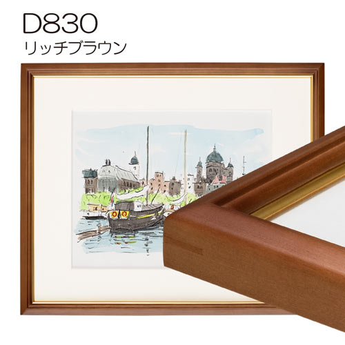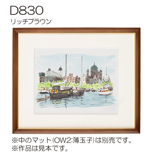 「D830」は、フレーム幅18mmのスタンダードなフレームです。内側のゴールドがアクセントになり作品に奥行きが生まれます。また、内側のゴールドは取り外しでき、2通りでお使いになれます。