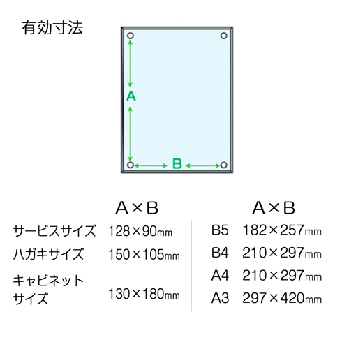 - ※有効寸法内のサイズの薄い紙等を入れてお使いいただけます。
