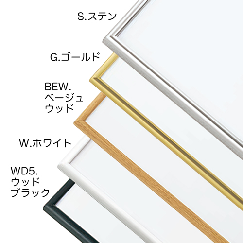 ◎フレーム色(5色):S.ステン、G.ゴールド、BEW.ベージュウッド、W.ホワイト、WD5.ウッドブラック