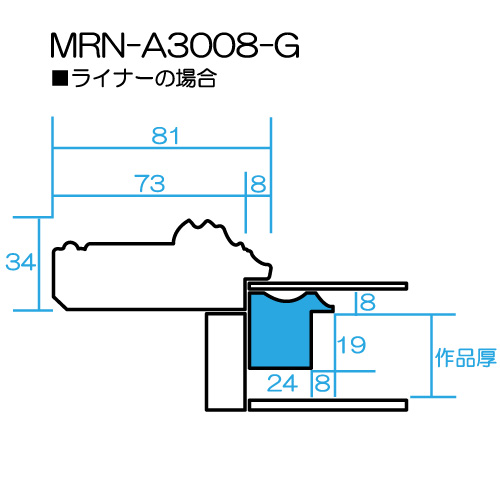 【ライナー・金】 : キャンバスサイズ + 200mm (98mm☓2 + 4mm)