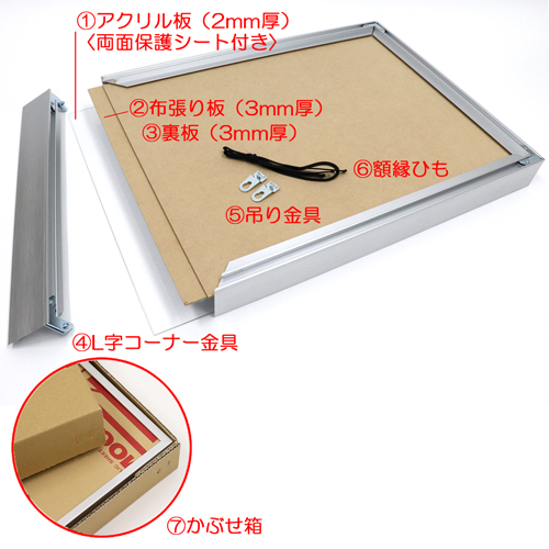 かぶせ箱、布張り板、紐(ひも)、吊り金具、L字コーナー金具、裏板