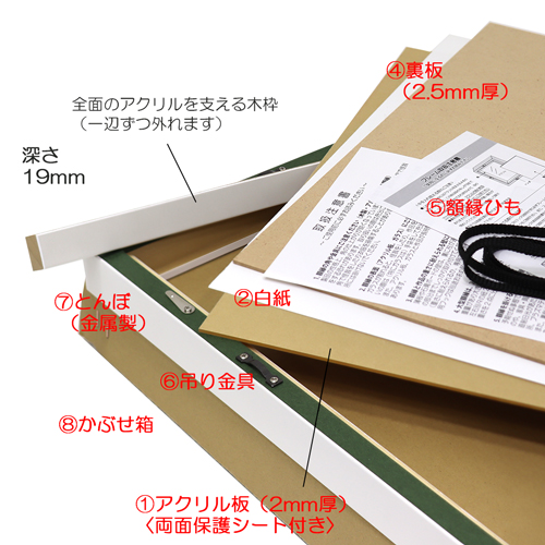 ボックス額縁:MRN-S6011-C ホワイト(UVカットアクリル)(オーダーメイドサイズ)