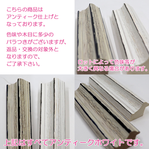 アンティーク仕上げで木目を活かした上品なフレームです。色味や木目が少しずつ異なり、1つ1つの風合いが特徴的な額縁です。