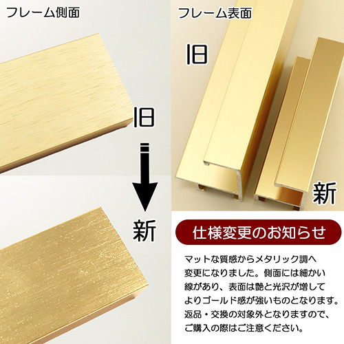 額はシンプルで落ち着いた、シルキーな光沢のゴールドで、どんな作品にもすんなり馴染んでくれそうです。