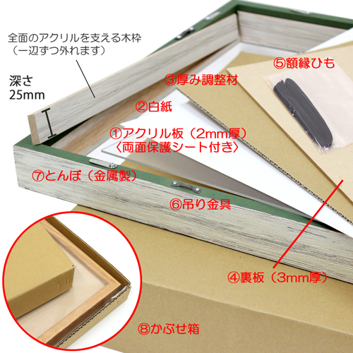 ボックス額縁:MRN-S6004-C アンティークホワイト(UVカットアクリル)(オーダーメイドサイズ)