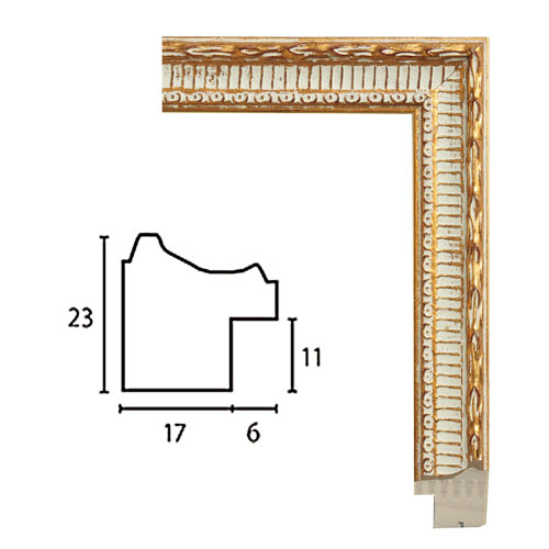 箔の光沢と模様の陰影を引き立たせるパティナを白色にすることで、軽やかで華やかな印象に仕上げたフレームです。