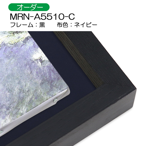 油彩額縁:MRN-A5510-C 黒[高さ45mm](UVカットアクリル) 【オーダーメイドサイズ】 13mmネジ付 布:ネイビー