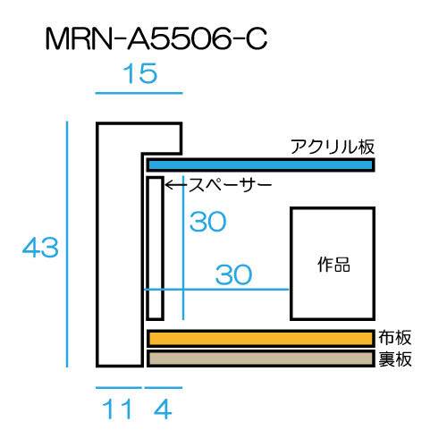油彩額縁:MRN-A5506-C 無垢[高さ43mm](UVカットアクリル) 【オーダーメイドサイズ】 13mmネジ付 布:ベージュ