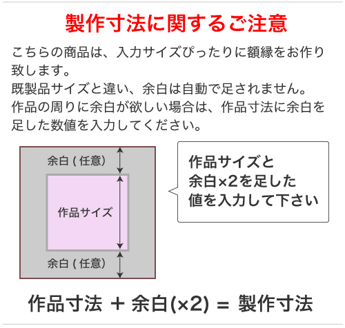 作品の周りに余白(布部分)ができるように製作寸法を入力ください。