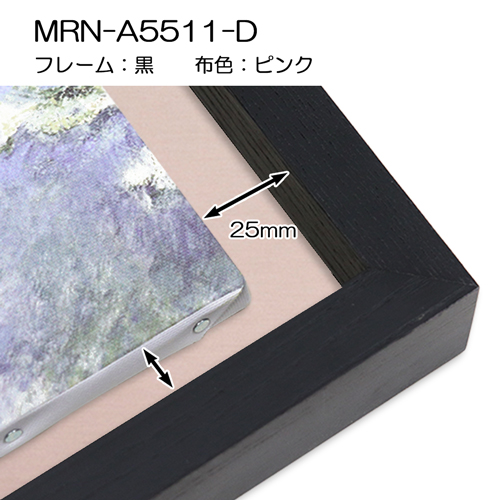 油彩額縁:MRN-A5511-D 黒[高さ54mm](UVカットアクリル) 【既製品サイズ】 13mmネジ付 布:ピンク