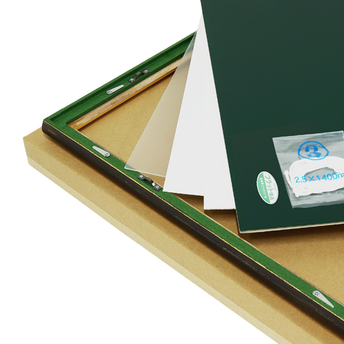 額縁の裏側に段差を付け、内側に止め具と吊り金具を取り付けた「フラット構造」で、額縁の傾きを抑え、壁面により密着した状態で展示することができます。