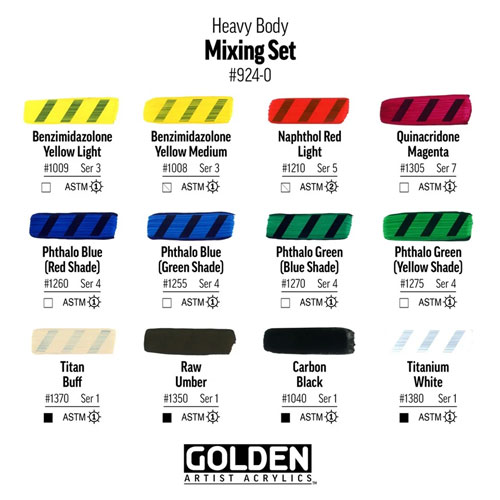 【GOLDEN アクリリックカラー[ヘビーボディー] ミキシングセット 12色セット】