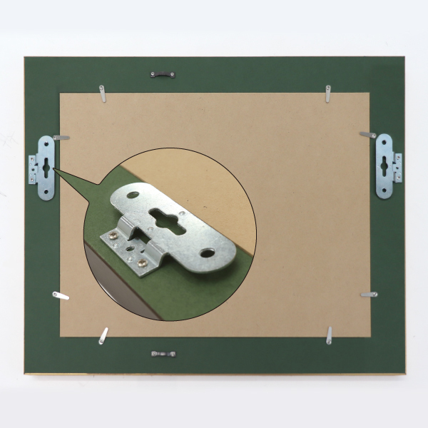 木製額縁およびアルミ額縁の両方に対応した、多機能な専用金具です。展示環境や用途に合わせて、以下の方法でご活用いただけます。