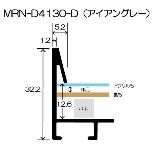 デッサン額縁:MRN-D4130-D アイアングレー(UVカットアクリル)(既製品サイズ)
