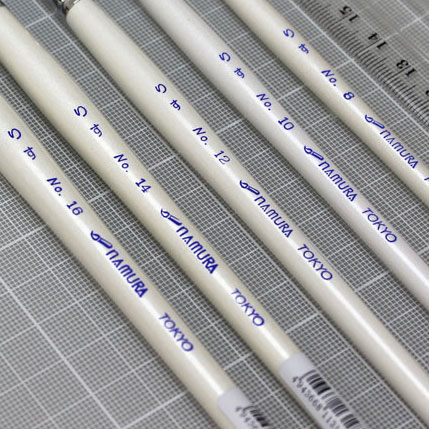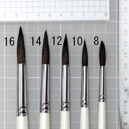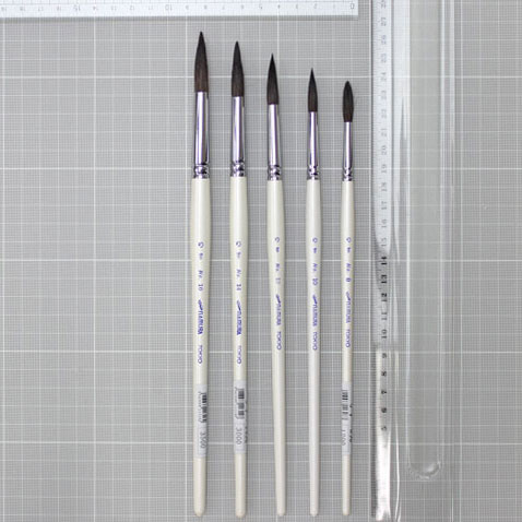 選別されたりす毛を主材にして作っています。ヨーロッパ製毛灰りす毛は、柔らかめで含みがよく、絵具の伸びが大変良いのが特徴です。専門家向きで、淡水画にも適しています。