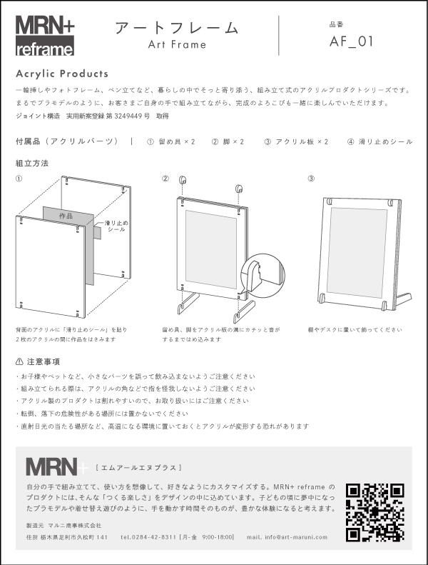 【MRN+ reframe】 アクリルプロダクト アートフレーム AF01 クリア