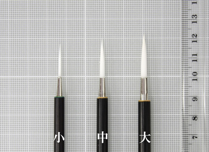 良質なナイロン毛を主材にした、安価な版下筆で、アニメーションの細部な彩色に特に向いています。使用後は良く水洗いをして下さい。