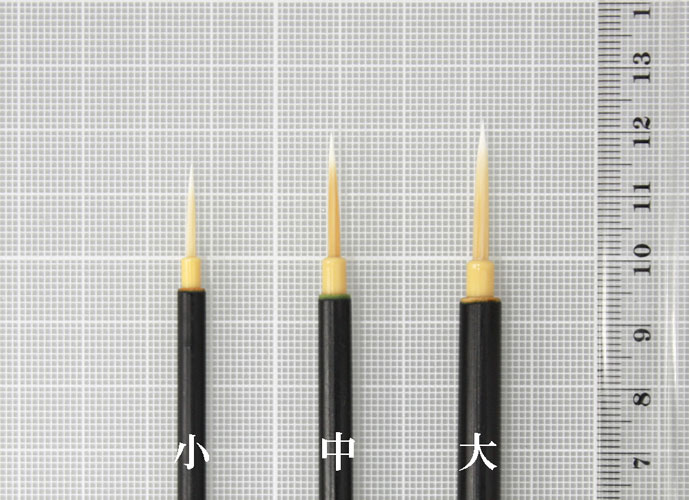 髪の毛、葉の穂先、木々の葉先などを具象的に描くのにちょうどよい硬さ。自然の味が出せる。