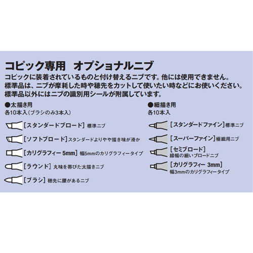 コピックに装着されているものと付け替えるニブです。他には使用できません。